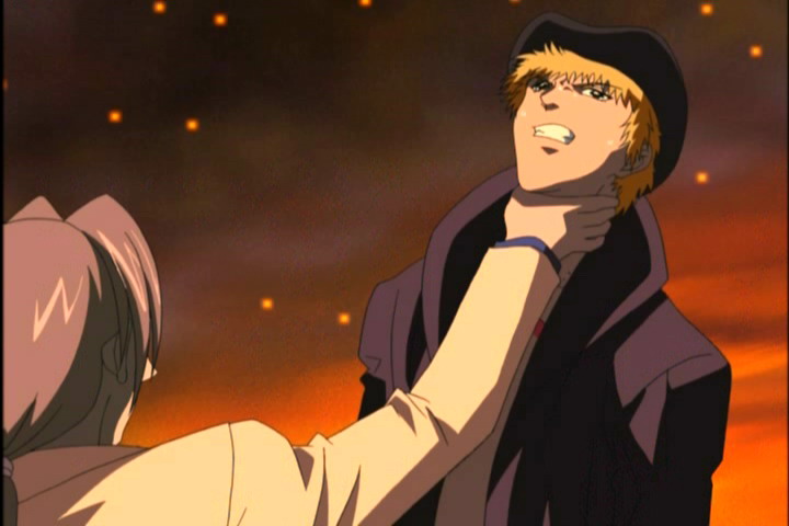 Ёдзи берёт медальон. Сиэль хватает его за руку. Отшвыривает к стене. Стена при этом трескается, Ёдзи, как и положено, почти цел.