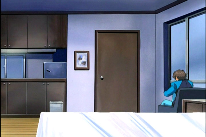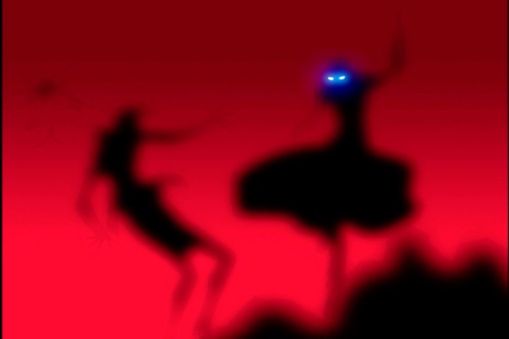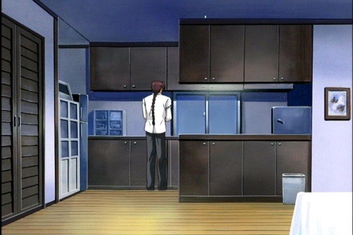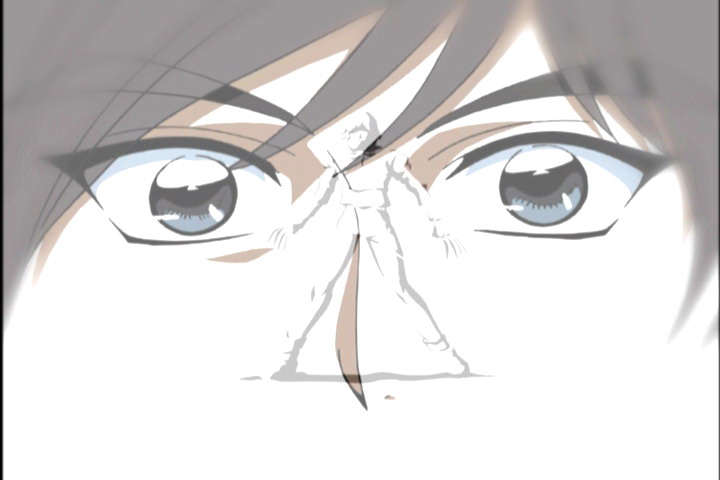 Кену кажется, что к нему кто-то подходит сзади. Он наносит удар по воздуху. Белый экран. Затем изображение снова становится обычным. Видимо, мы смотрели чьими-то глазами. Эпитафии?