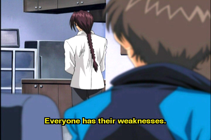 В пятой серии так Саяка держала Кё.