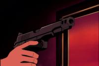 Ёдзи проволокой подтягивает к себе пистолет и стреляет 4 раза. Итого 12-зарядный пистолетик.